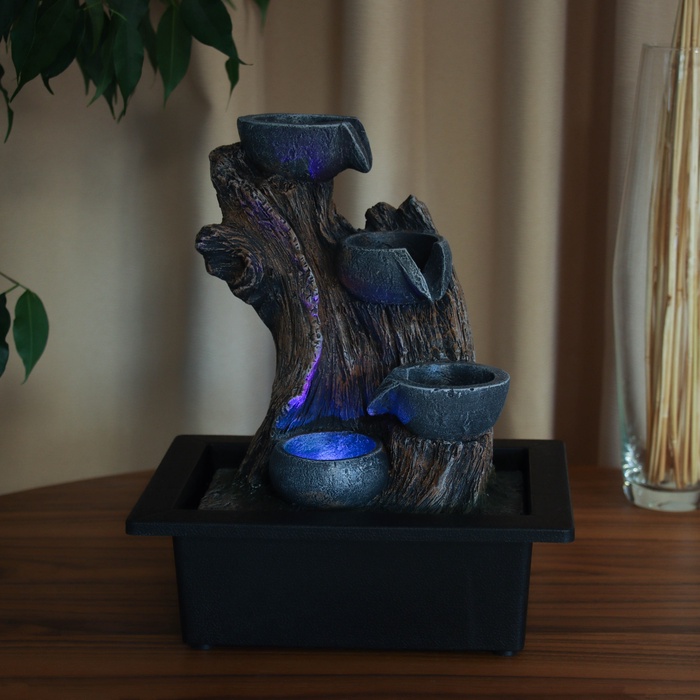 Фонтан настольный «Каменные кадки на дереве», 27×23 см, с подсветкой, без шарика