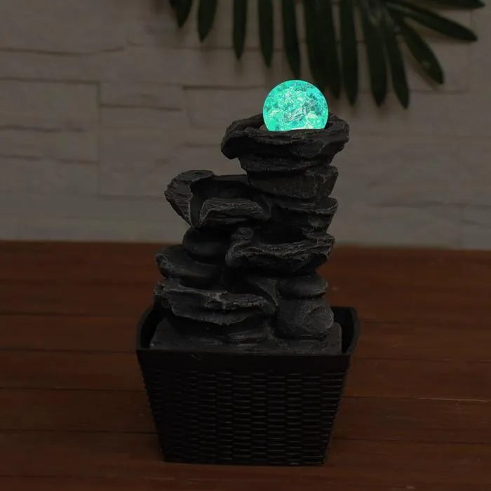 Фонтан выполнен в классическом стиле, что делает его универсальным дополнением к любому помещению. С размерами 13×12×23 см он идеально впишется на столе, полке или подоконнике. Встроенная подсветка добавляет волшебства, создавая мягкий свет, который превращает вечерние часы в настоящую сказку.