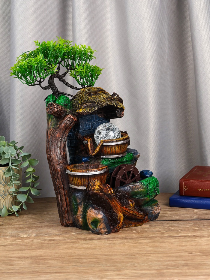 Создайте уютный уголок дикой природы у себя дома! Декоративный фонтан «Хижина под деревом» с подсветкой — это не просто элемент декора, а живой источник умиротворения и природной гармонии. Мягкий звук переливающейся воды и теплый свет превратят любую комнату в место для релаксации.