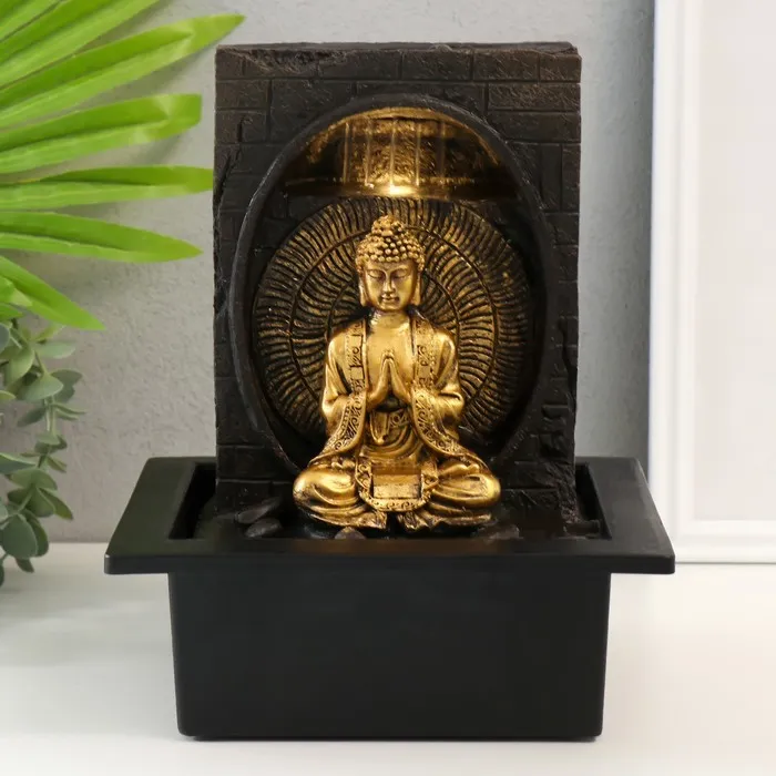 Фонтан настольный от сети, подсветка "Будда в лотосной арке" 27х20х20 см