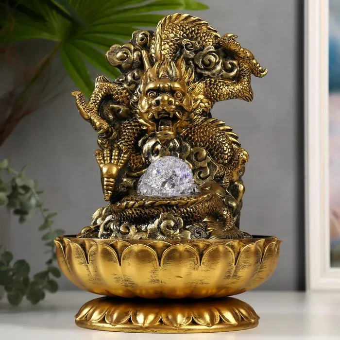 Фонтан настольный от сети, подсветка "Золотой дракон" 32х23х23 см