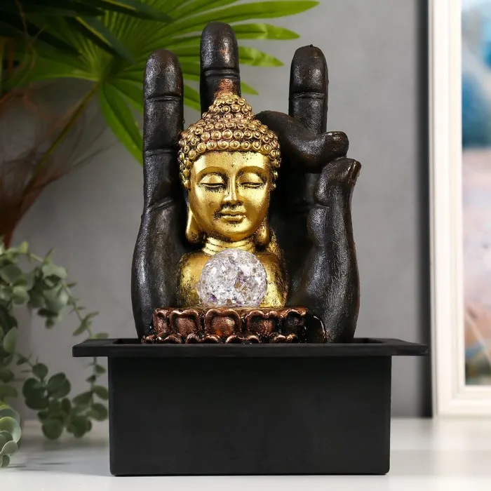 Фонтан настольный от сети, подсветка "Будда и рука" 35х20х25 см