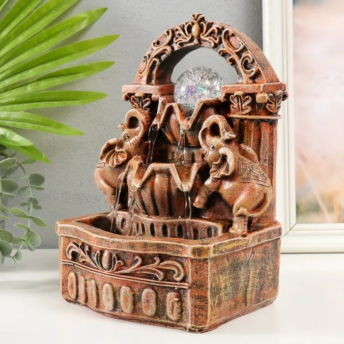 Фонтан настольный от сети, подсветка "Два слона под аркой" 19х14х26 см