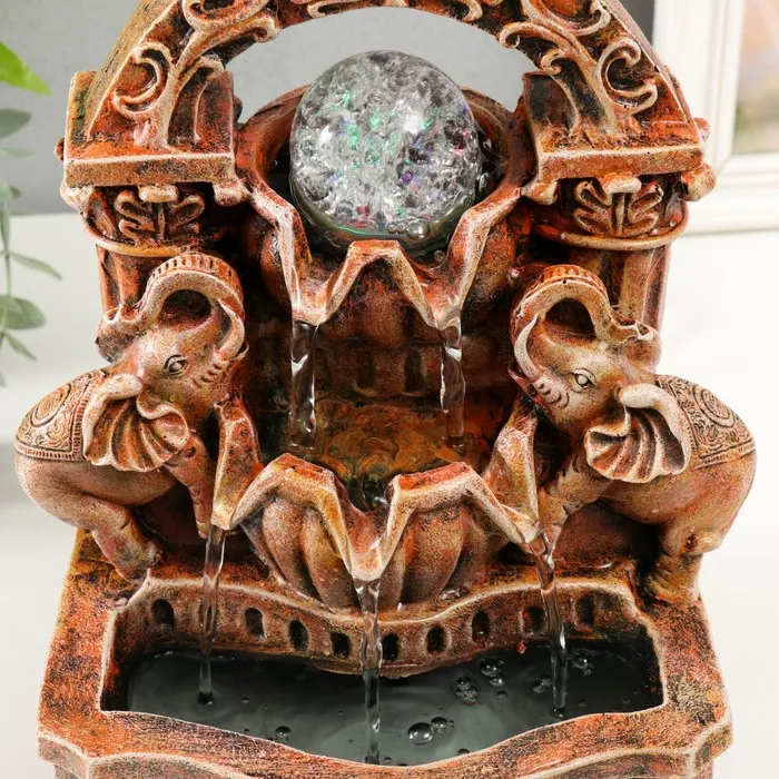 Фонтан настольный от сети, подсветка "Два слона под аркой" 19х14х26 см — Характеристики
