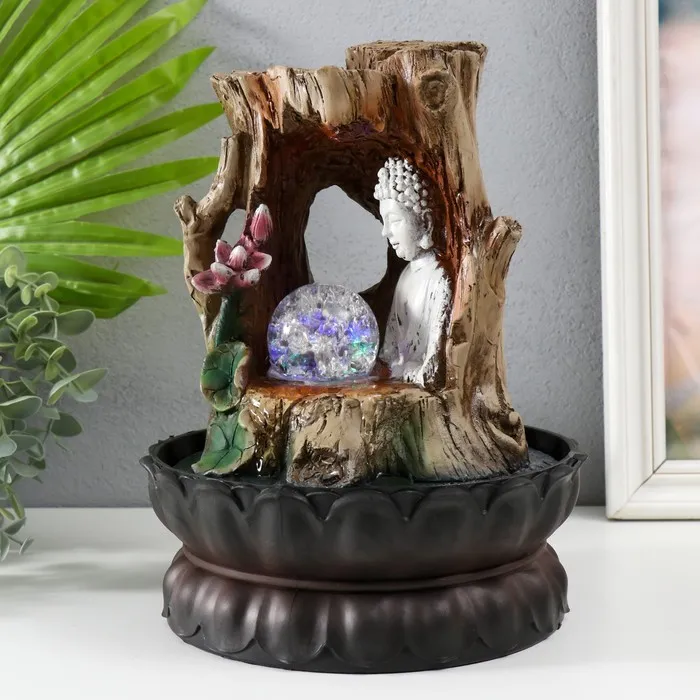 Фонтан настольный от сети, подсветка "Будда в дереве" 27х20х20 см