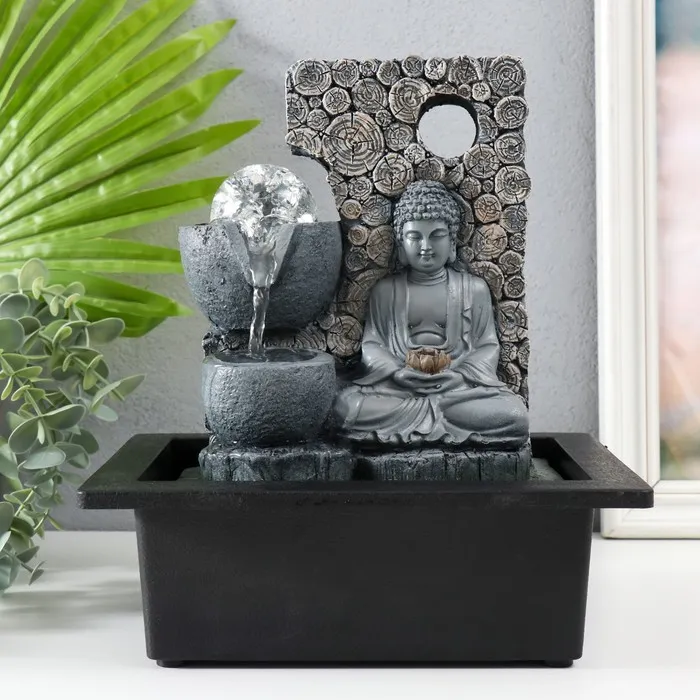 Фонтан настольный от сети, подсветка "Будда у стены из брусьев" 26х17,5х23 см