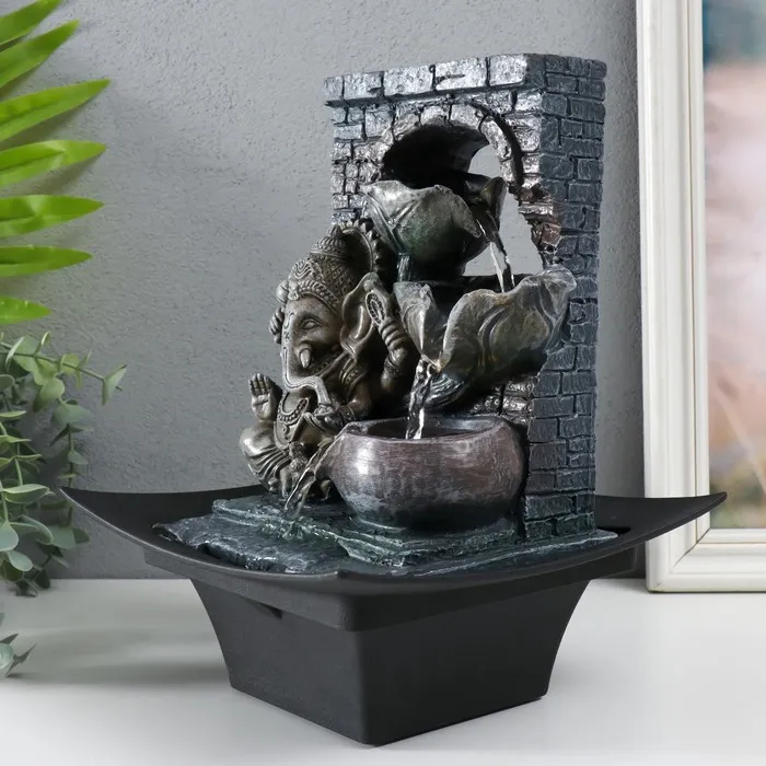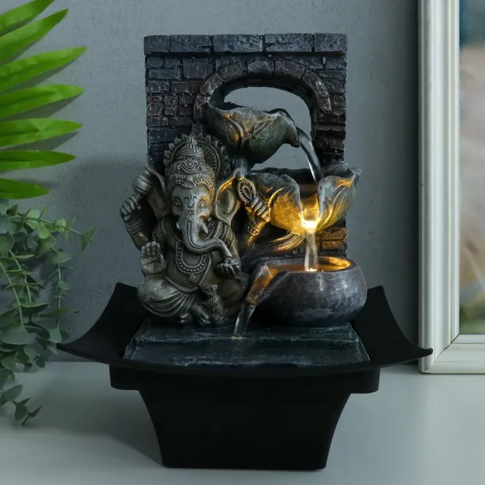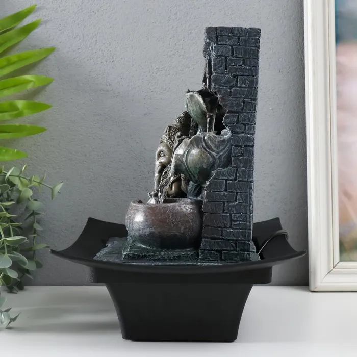 Фонтан настольный от сети, подсветка "Ганеша у каменного фонтана" серый 20,5х20,5х26 см