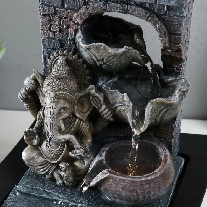 Фонтан настольный с подсветкой "Ганеша с 5-ю чашами" 22,5х16х16 см
