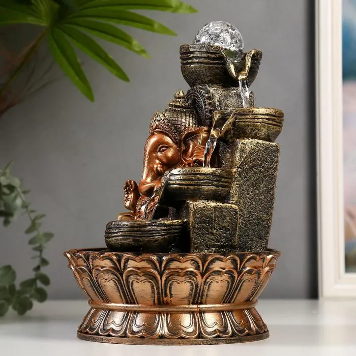 Фонтан настольный от сети, подсветка "Ганеша в храме" бронза 40х25х25 см