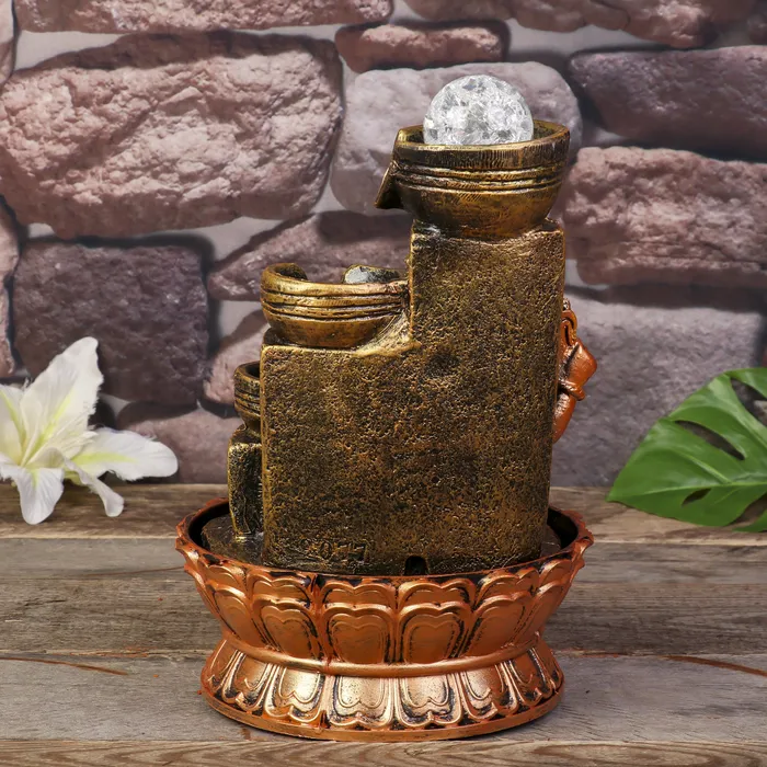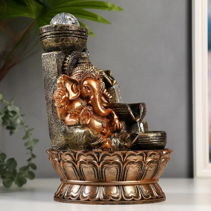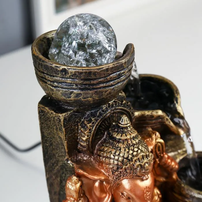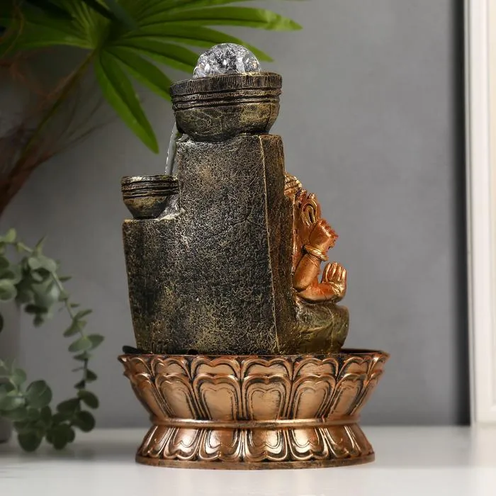 Фонтан настольный от сети, подсветка "Ганеша у водопада с чашами" 28х19,5х19,5 см