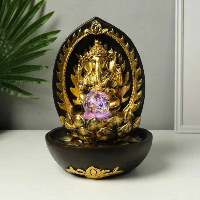 Фонтан настольный от сети, подсветка "Ганеша в арке у лотоса" 22х22х31 см