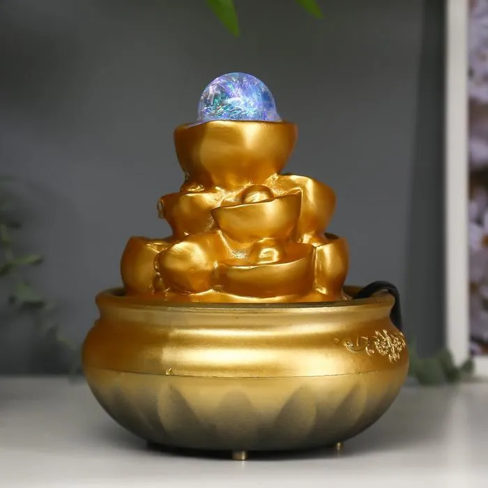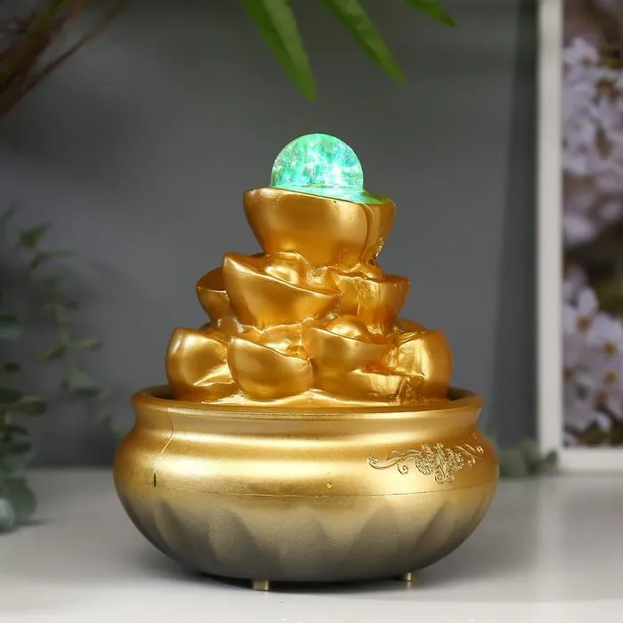 Фонтан настольный от сети, подсветка "Гора золотых слитков" 18,5х15х15 см