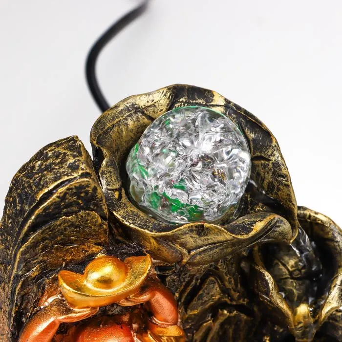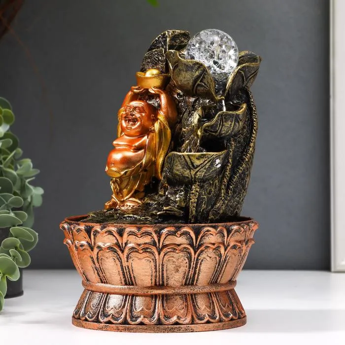 Фонтан настольный от сети, подсветка "Хотей со слитком у горного фонтана" 22,5х15х15 см — Характеристики