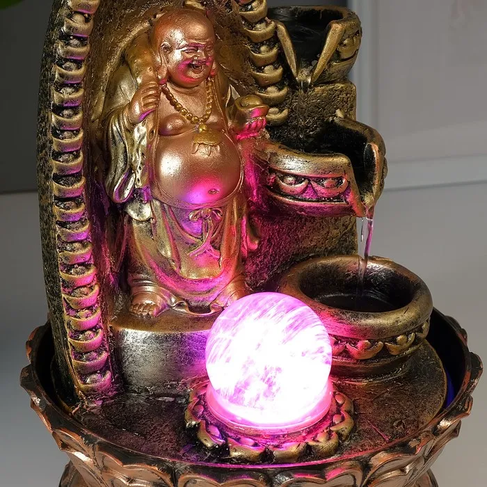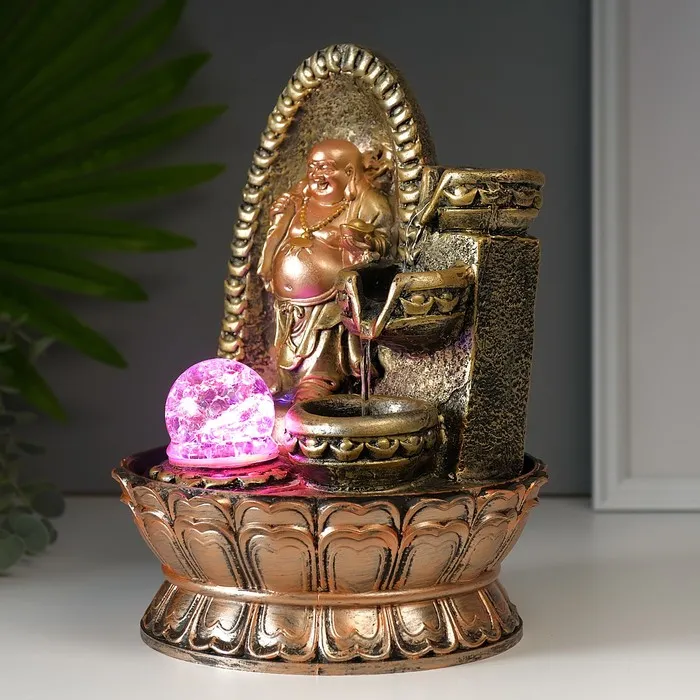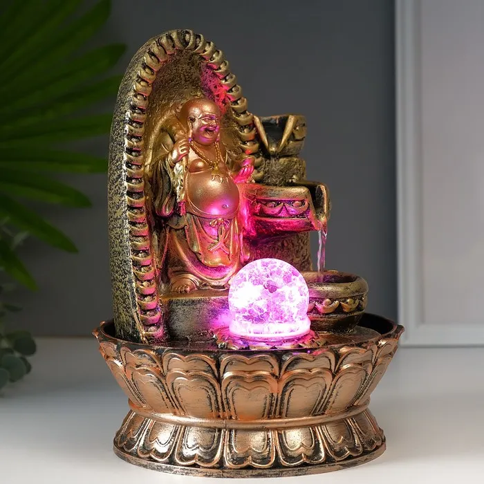 Фонтан настольный от сети, подсветка "Хотей в арке с водопадом" 28,5х20х20 см