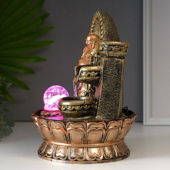 Фонтан настольный с подсветкой "Маленький Будда с чайником" 25х19,5х19,5 см
