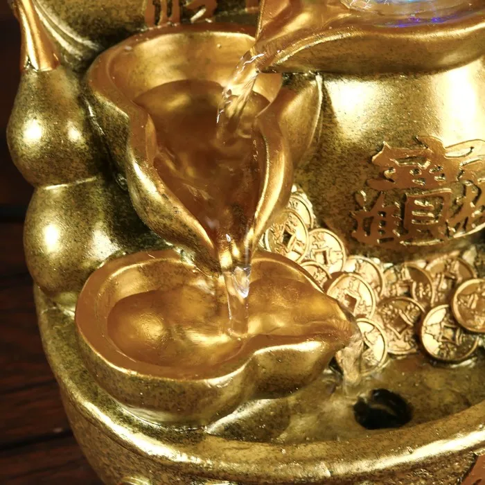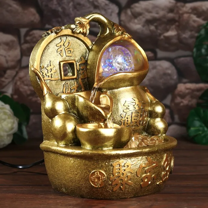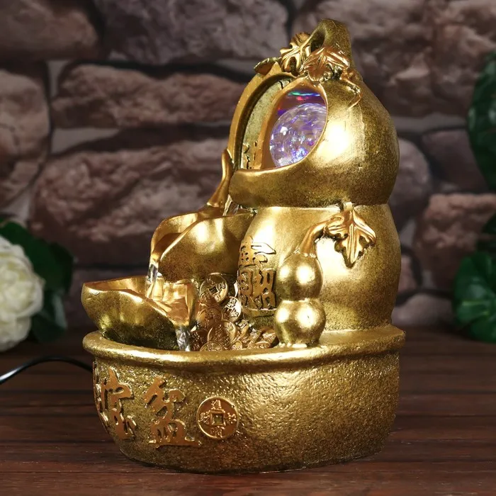 Фонтан настольный от сети, подсветка "Китайская монета" золото 26х18х17 см — Характеристики