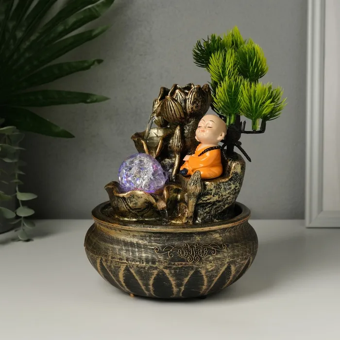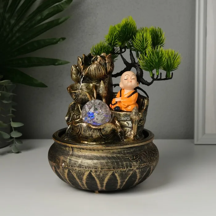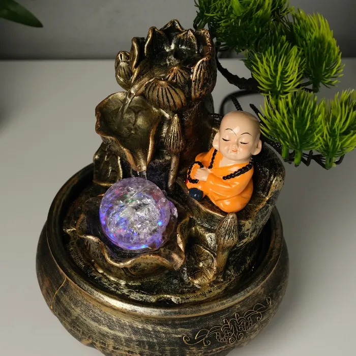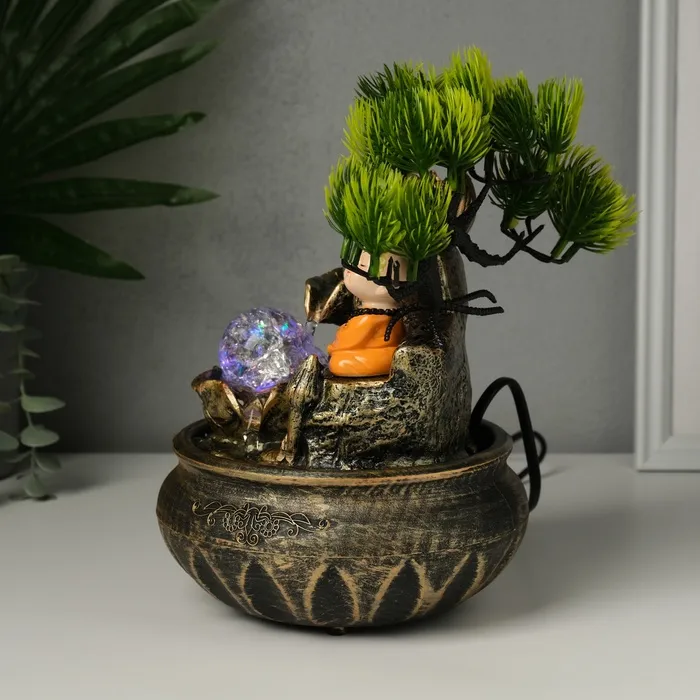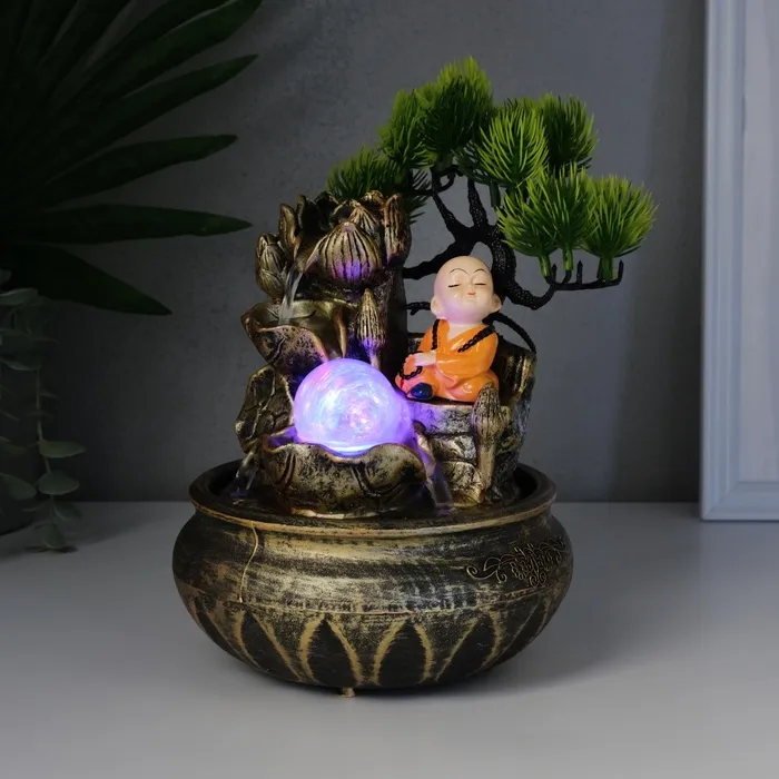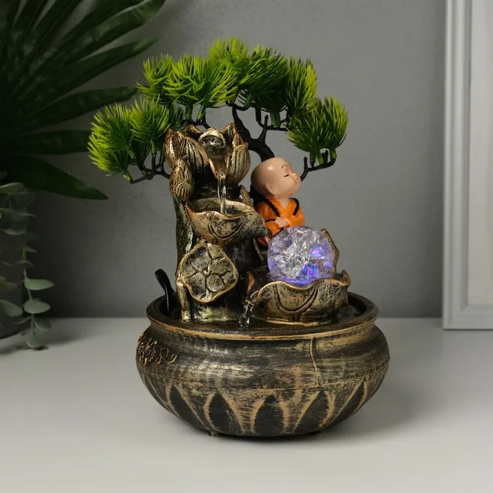 Фонтан настольный от сети, подсветка "Маленький Хотей у дерева" МИКС 16х18х24 см — Характеристики