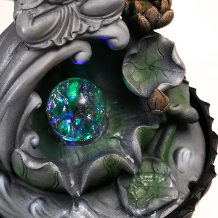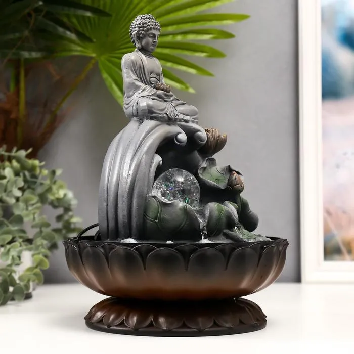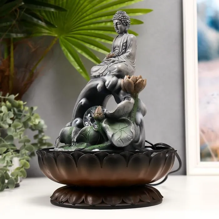 Фонтан настольный от сети, подсветка "Серый будда с шаром" 30х19х19 см