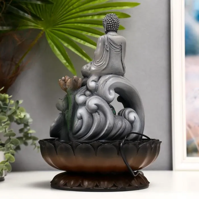 Фонтан настольный от сети, подсветка "Серый будда на волне" 34х23х23 см