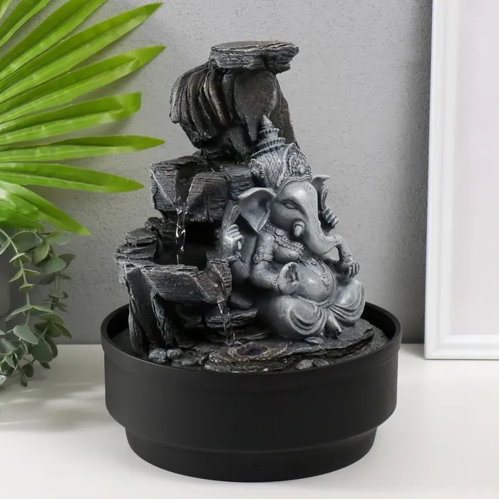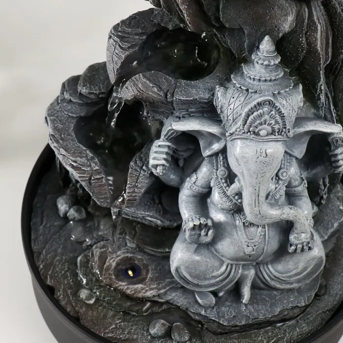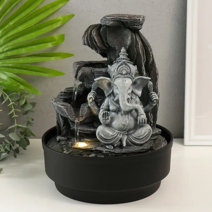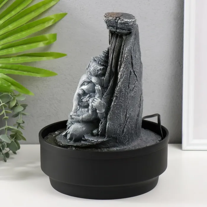 Фонтан настольный от сети, подсветка "Серый Ганеша в каменном гроте" 21х21х28 см