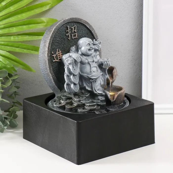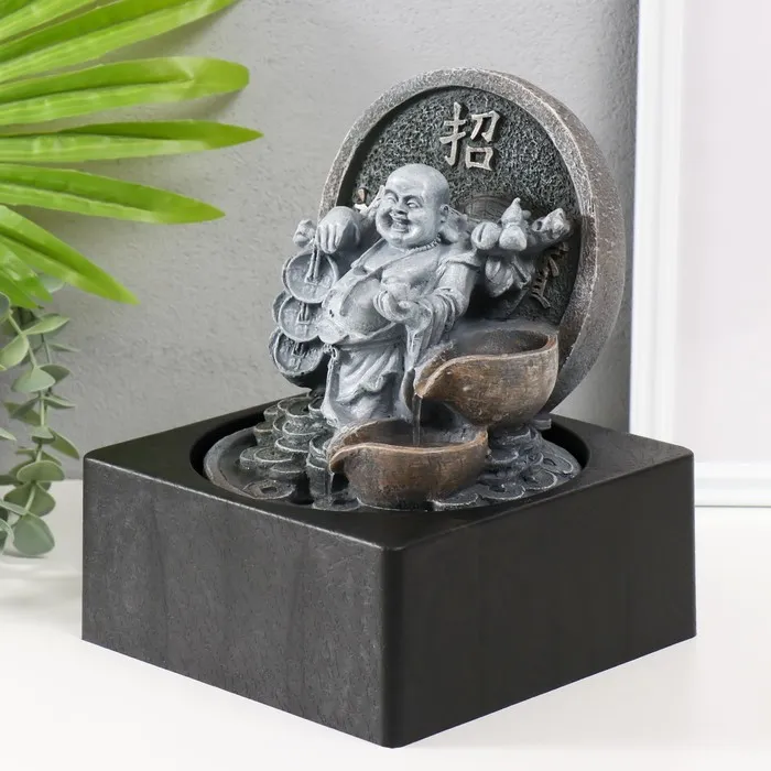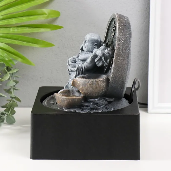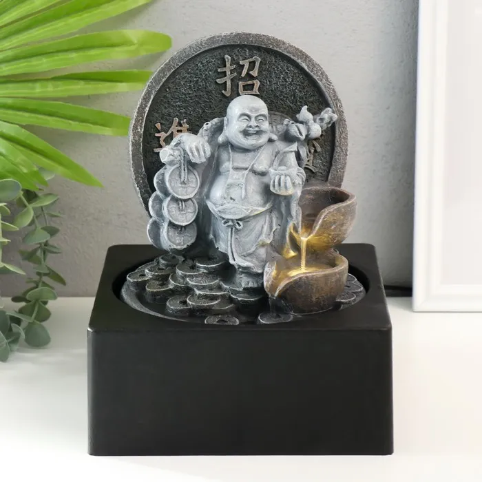 Фонтан настольный от сети, подсветка "Серый хотей со связками монет" 18х18х24 см — Характеристики
