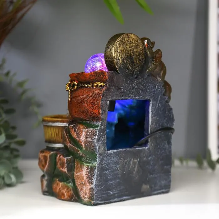 Фонтан настольный от сети, подсветка "Слоны и китайская монета" 20,5х14х11 см