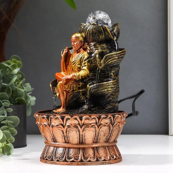 Фонтан настольный от сети, подсветка "Старец" 22,5х15х15 см