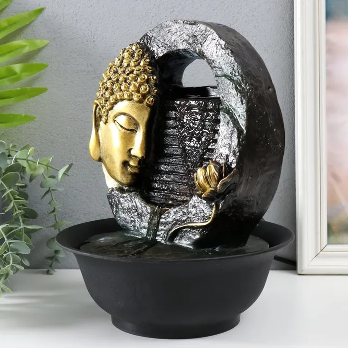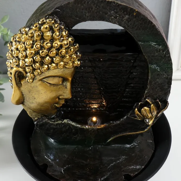 Фонтан настольный от сети, подсветка "Золотая голова Будды и лотос" 21,3х16,8х27 см — Характеристики
