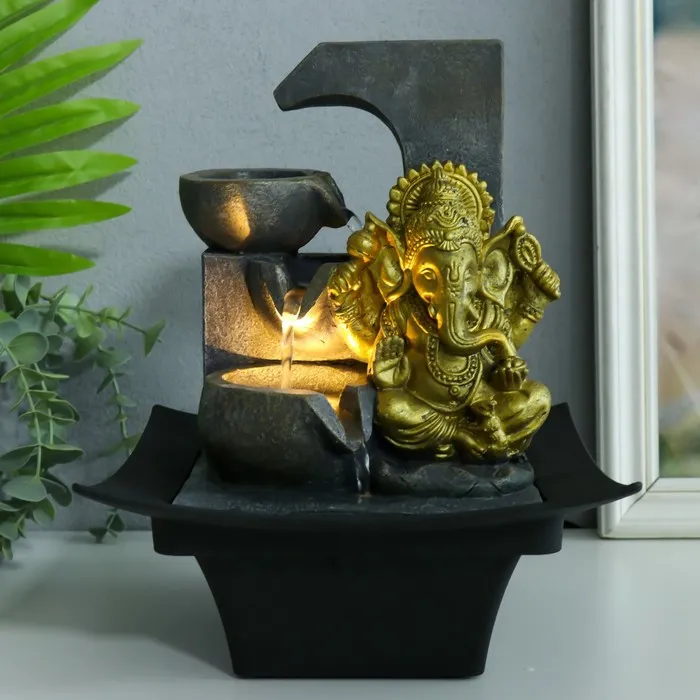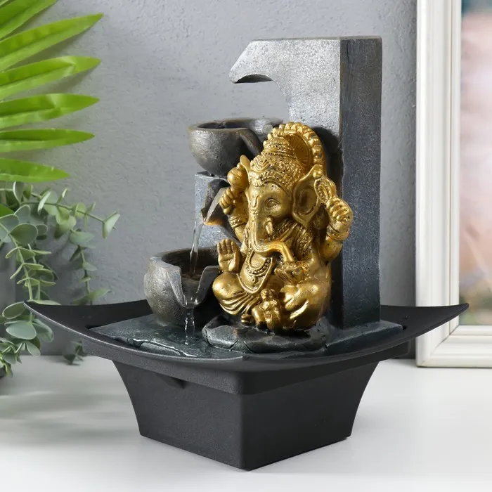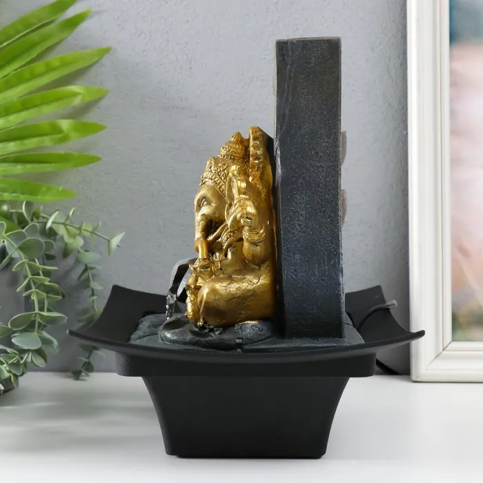 Фонтан настольный от сети, подсветка "Золотой Ганеша у каменного фонтана" 20,5х20,5х26 см