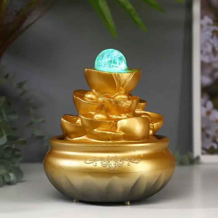 Фонтан настольный от сети, подсветка "Гора золотых слитков" 18,5х15х15 см