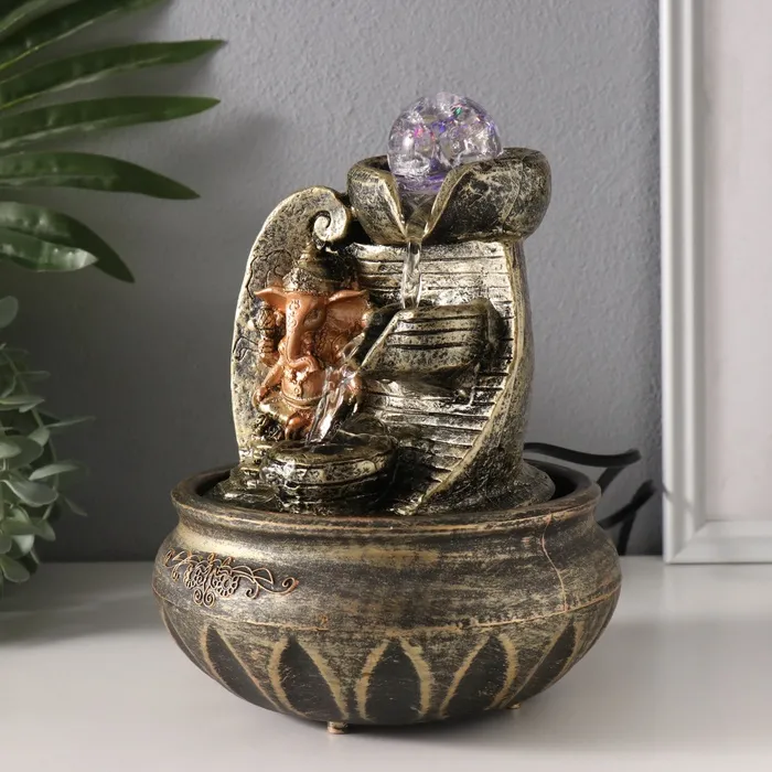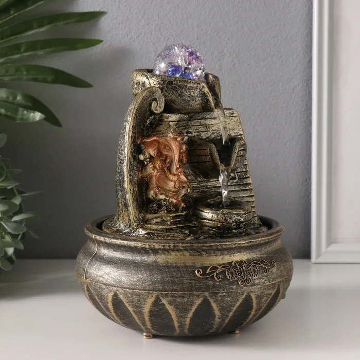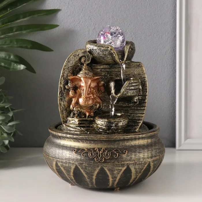 Фонтан настольный от сети, подсветка "Золотой Ганеша у природного фонтана" 20,5х15х15 см — Характеристики