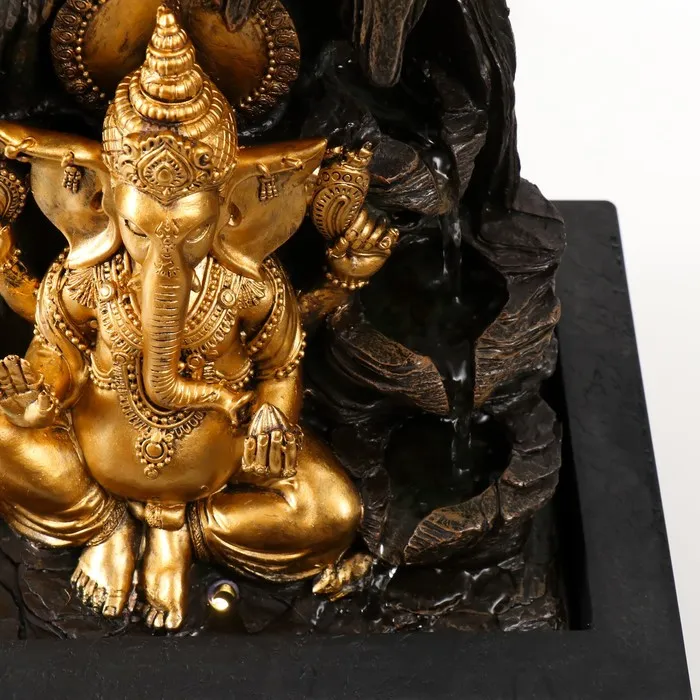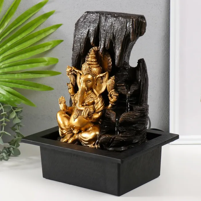 Фонтан настольный от сети, подсветка "Золотой Ганеша в гроте" 25х20х33 см