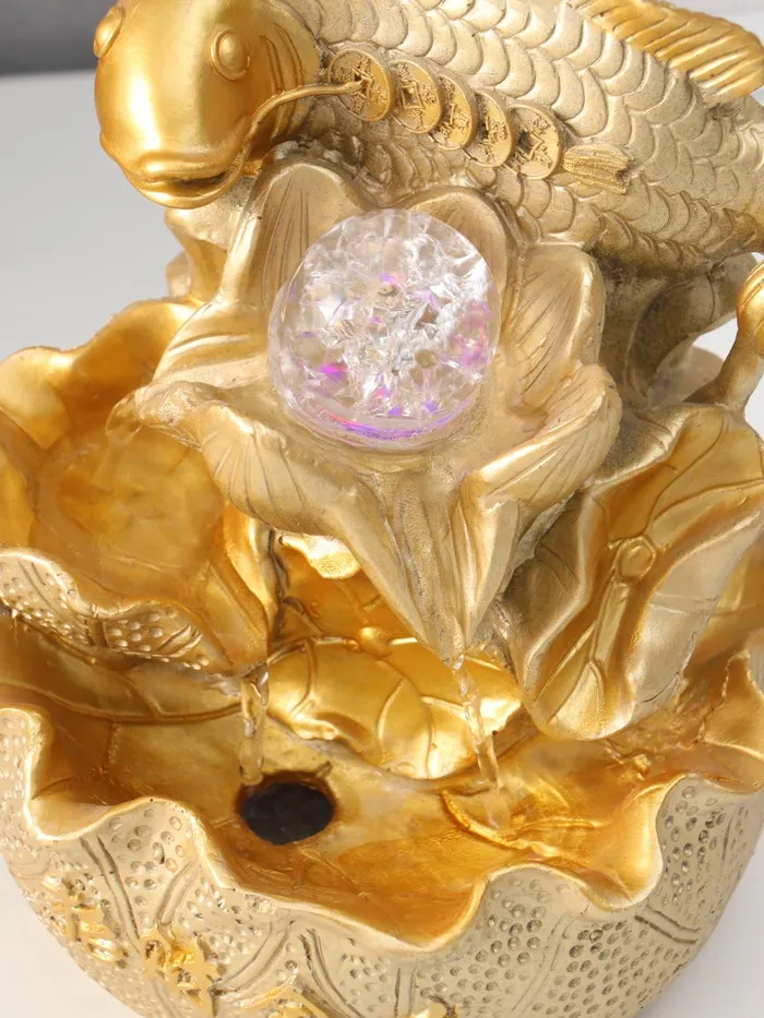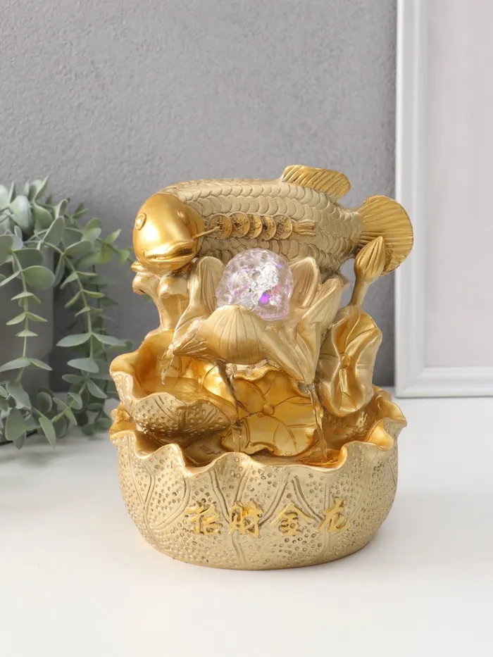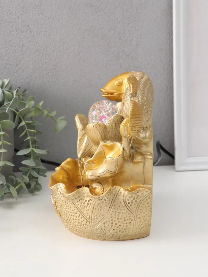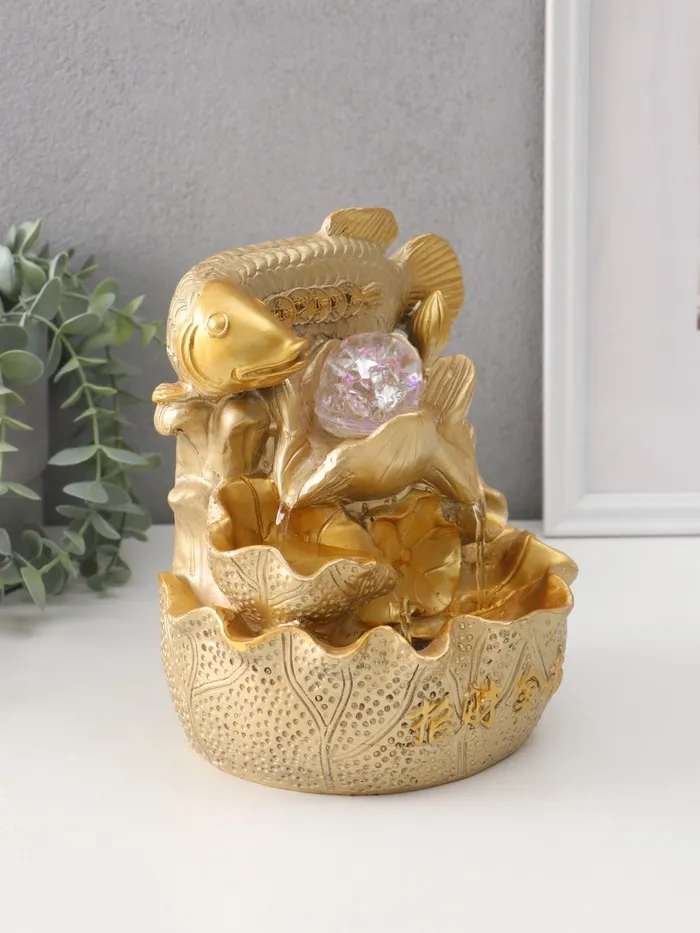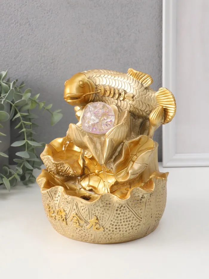 Фонтан настольный от сети, подсветка "Золотой карп с монетами" золото 21х15х12 см — Характеристики