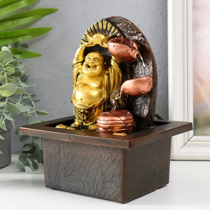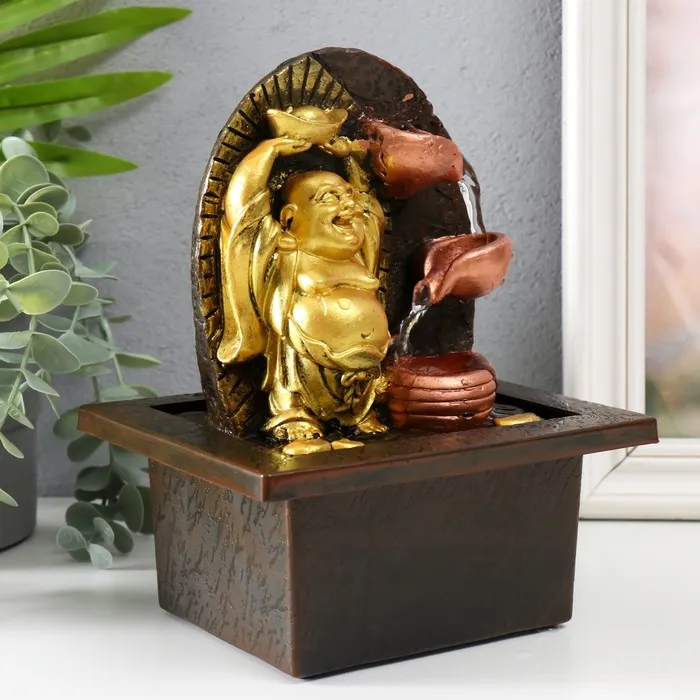 Фонтан настольный с подсветкой "Маленький Будда с чайником" 25х19,5х19,5 см