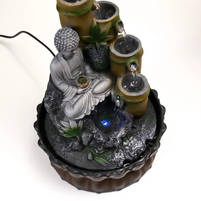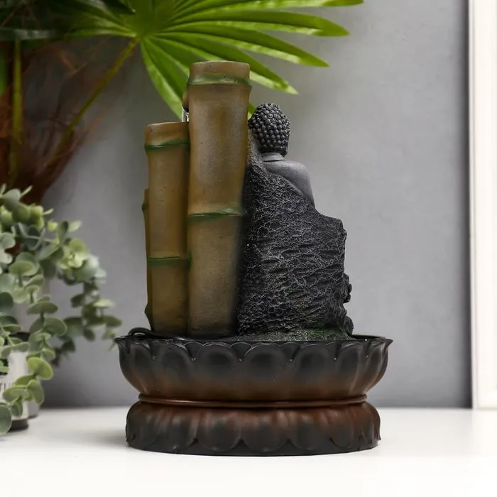 Фонтан настольный от сети "Серый будда и фонтан из бамбука" 28х20,5х20,5 см