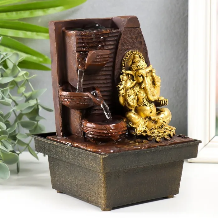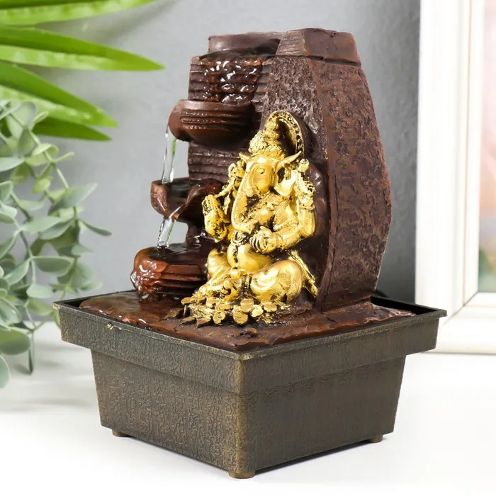 Фонтан настольный от сети "Золотой Ганеша - природный фонтан" 19х12,5х12,5 см
