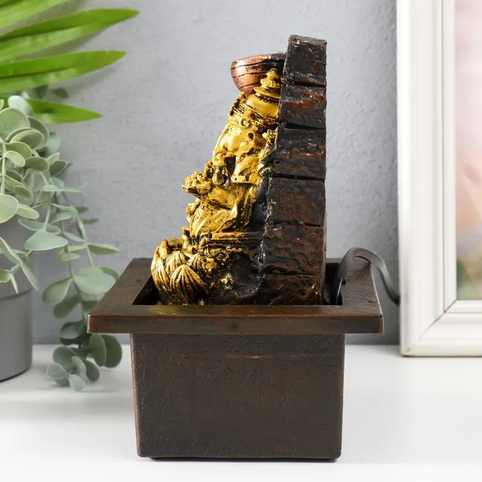Фонтан настольный от сети "Золотой Ганеша в лотосе у каменной стены" 13х13х20 см