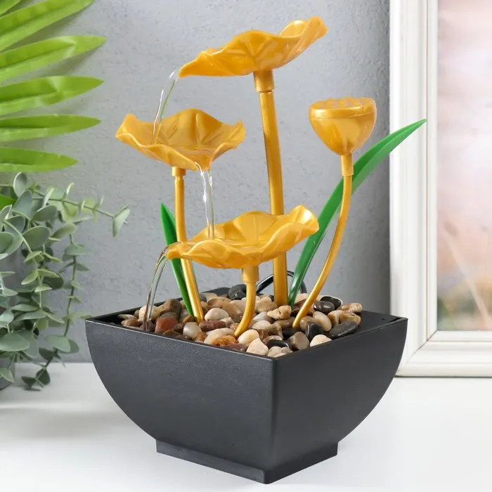 Фонтан настольный от сети "Золотые лотосы в пруду" 13х15х24,5 см — Характеристики