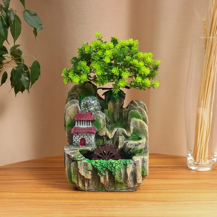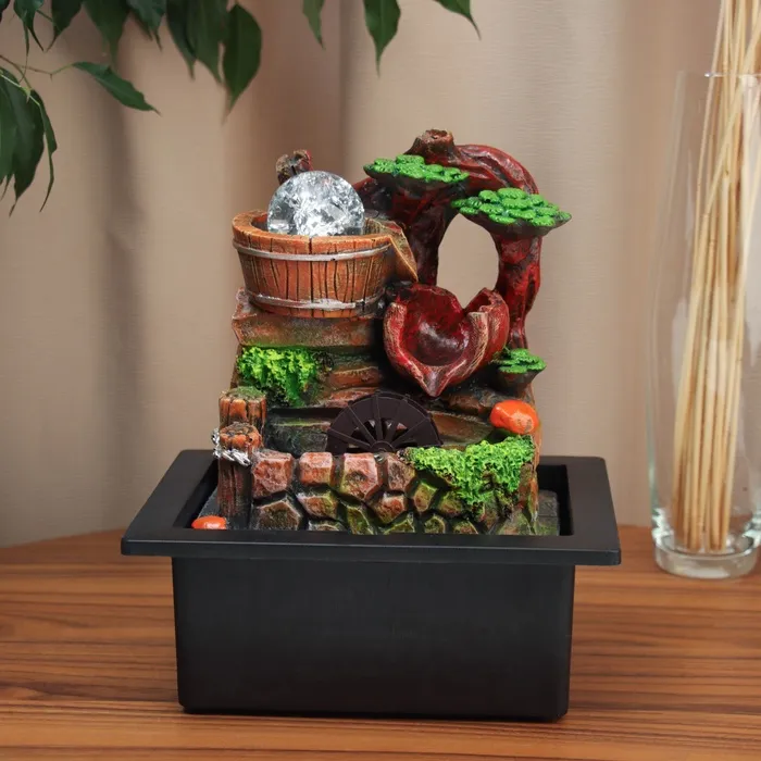 Непрерывное движение воды поддерживает оптимальный уровень влажности, что особенно ценно в помещениях с кондиционером или отоплением. Фонтан служит естественным увлажнителем, а его мягкий звук создаёт акустический фон, способствующий концентрации или медитативному отдыху. Это практичное решение для тех, кто ценит как эстетику, так и функциональность деталей интерьера.