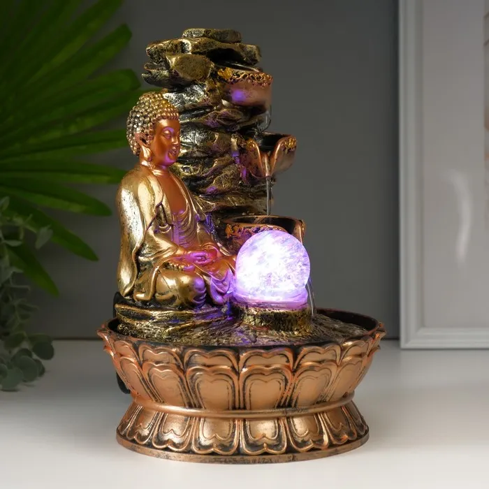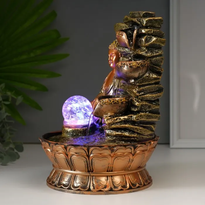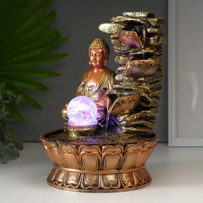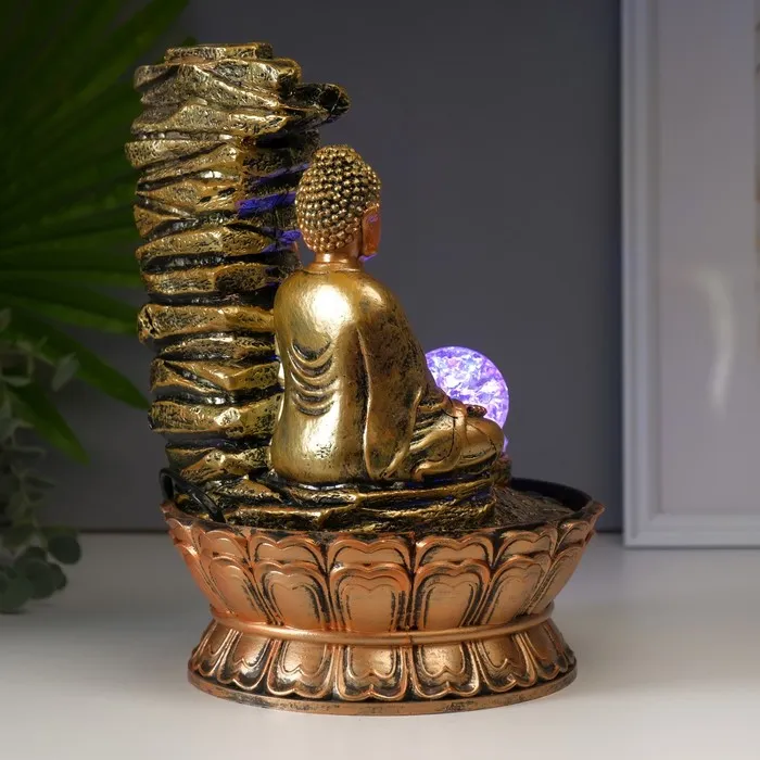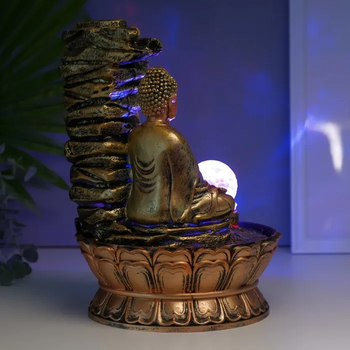 Фонтан настольный полистоун от сети свет "Маленький будда - медитация" 30х20х20 см