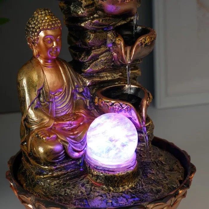 Фонтан настольный от сети, подсветка "Будда в лотосной арке" 27х20х20 см