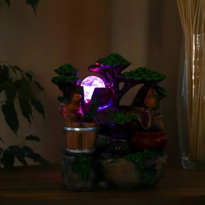 Создайте сказочную атмосферу в вашем доме с фонтаном с птичками у мельницы. Этот живописный элемент интерьера не только украсит ваше пространство, но и наполнит его спокойствием, благодаря своей природе и мягкому свету.
