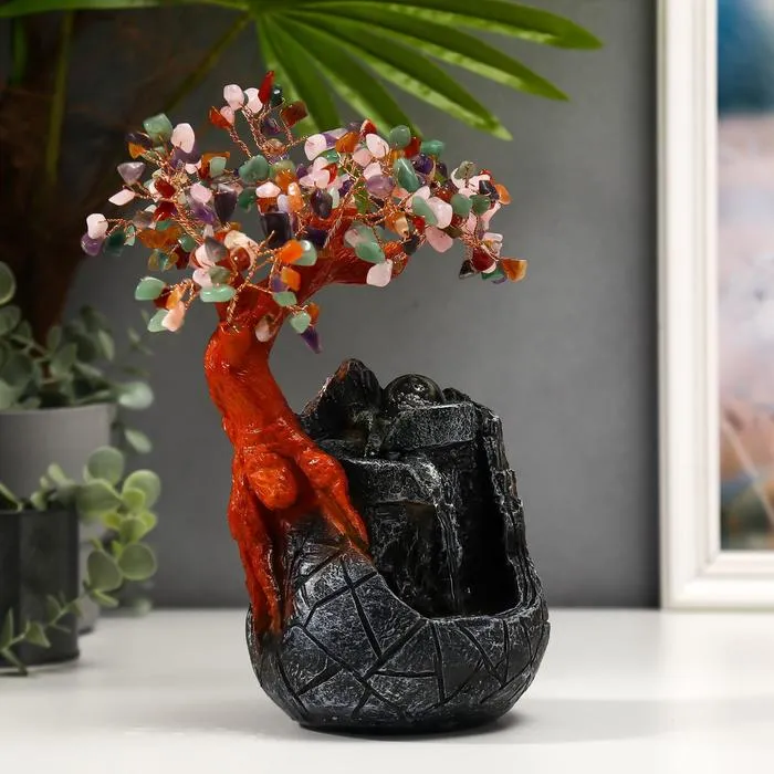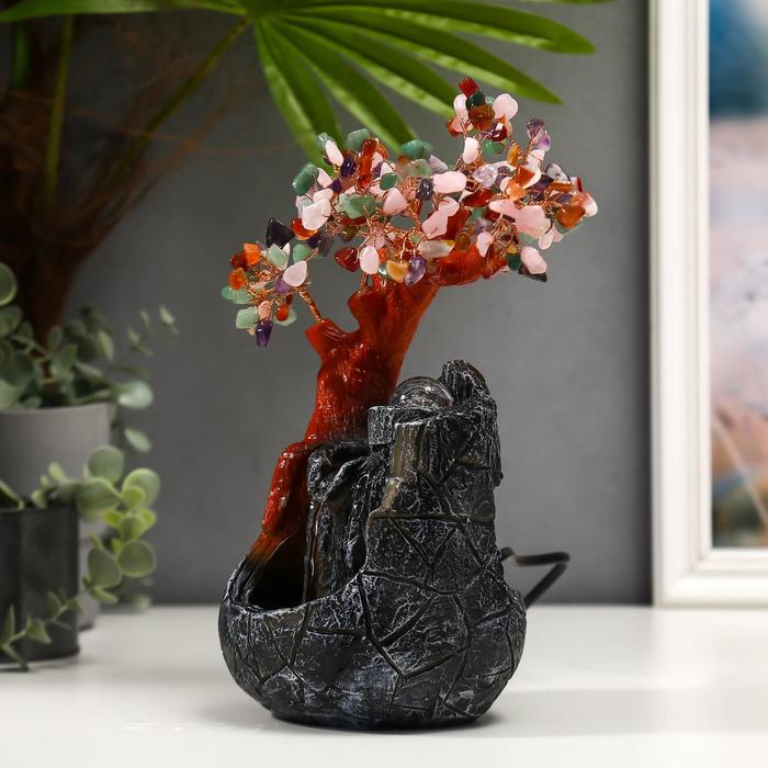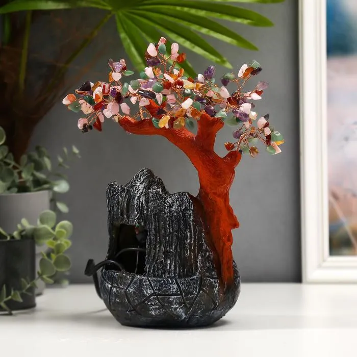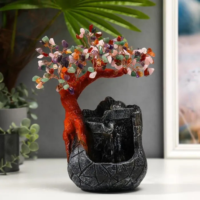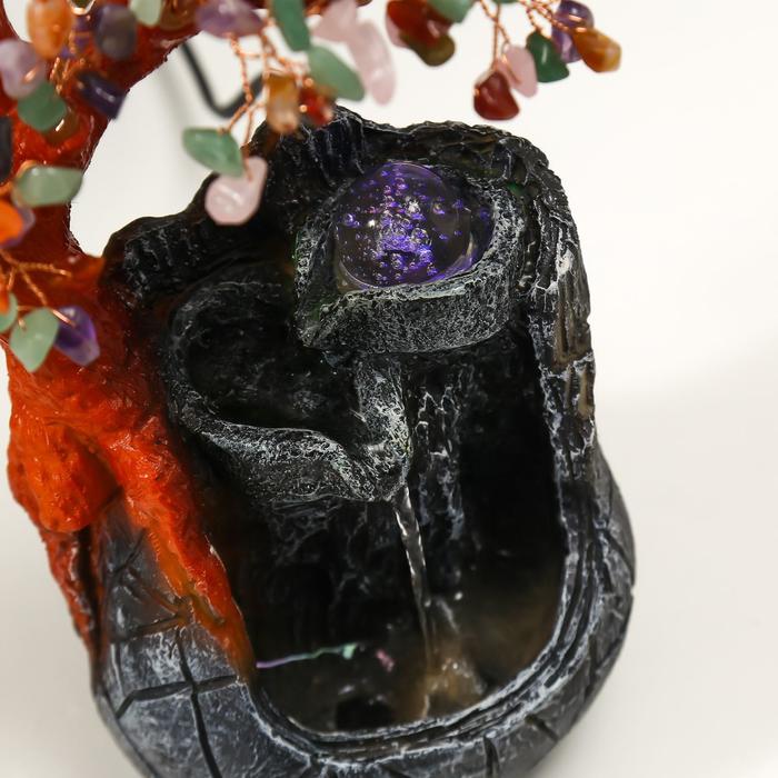 Фонтан настольный с подсветкой «Дерево с самоцветами и водопад», 180 камней, 26×19×12 см