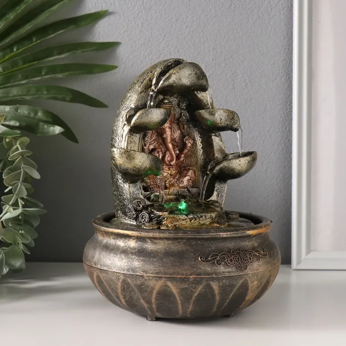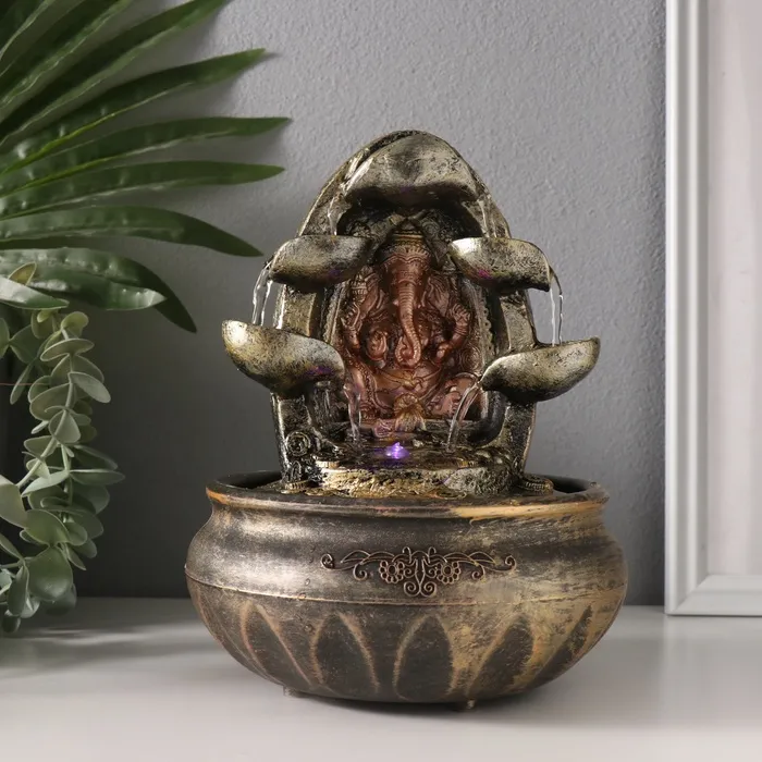 Декоративный фонтанчик наполняет дом уютом. Особенно актуально иметь фонтан настольный с подсветкой "Ганеша с 5-ю чашами" 22,5х16х16 см в квартирах. В таких помещениях чаще всего царит энергетический дисбаланс, а этот предмет восстановит равновесие между Инь и Ян.