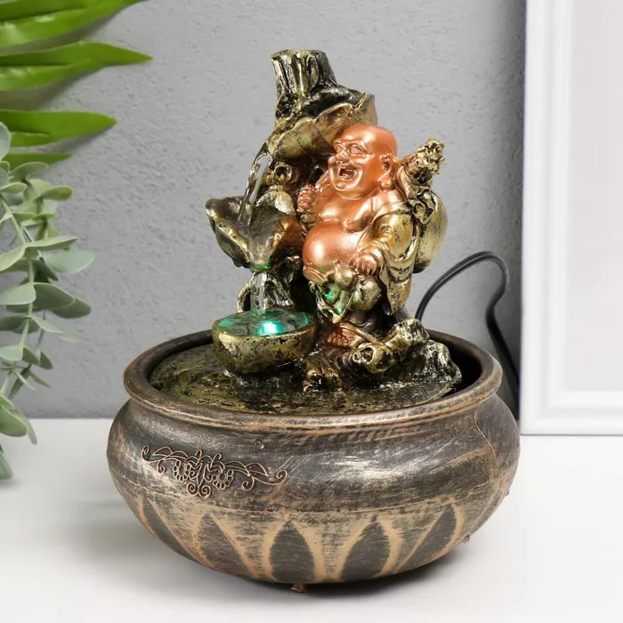 Декоративный фонтанчик наполняет дом уютом. Особенно актуально иметь фонтан настольный с подсветкой "Хотей у водопада" 22,5х16х16 см в квартирах. В таких помещениях чаще всего царит энергетический дисбаланс, а этот предмет восстановит равновесие между Инь и Ян.