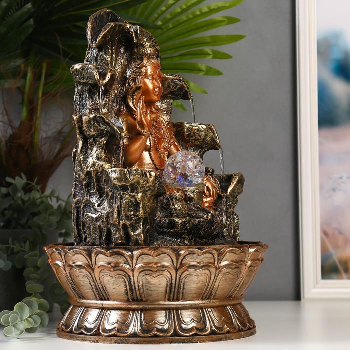 Фонтан настольный от сети, подсветка "Портрет сидящего Ганеша" 21х17х27 см