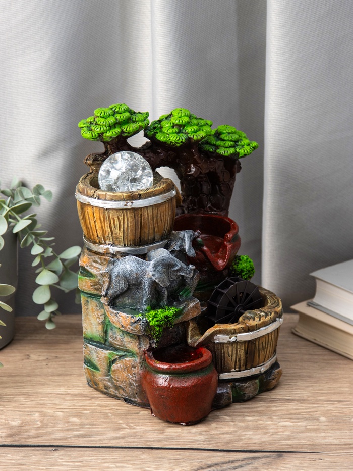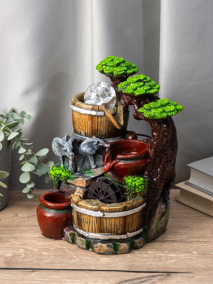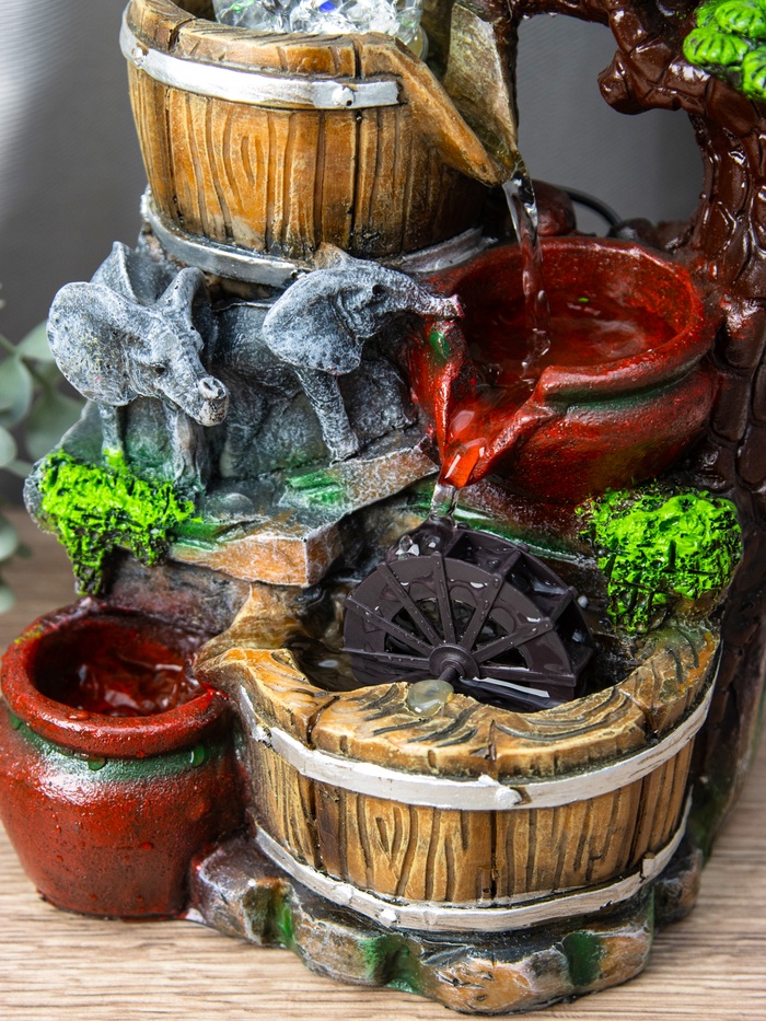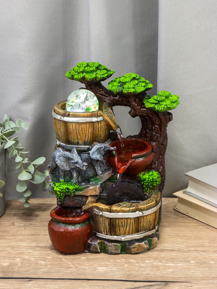 Фонтан настольный «Слоники под деревом, бочки и кувшины», 12×15×24 см, с подсветкой