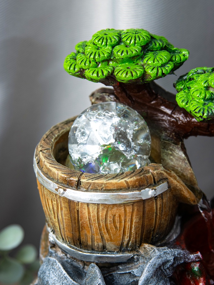 Фонтан настольный «Слоники под деревом, бочки и кувшины», 12×15×24 см, с подсветкой — Характеристики
