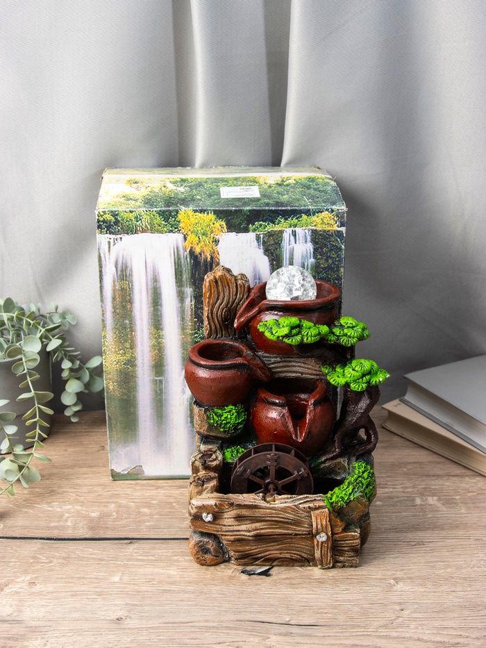 Фонтан настольный «Бочки и лопата», 27×18 см, с подсветкой