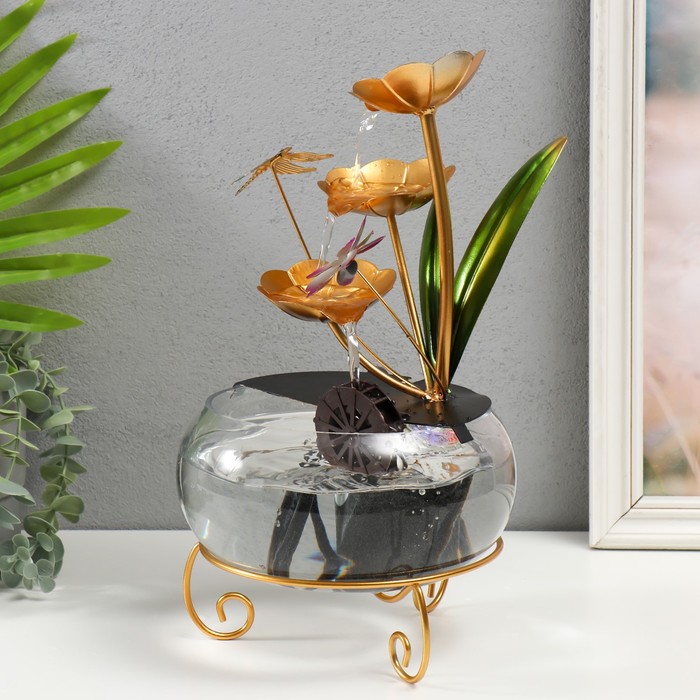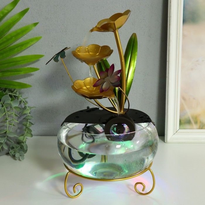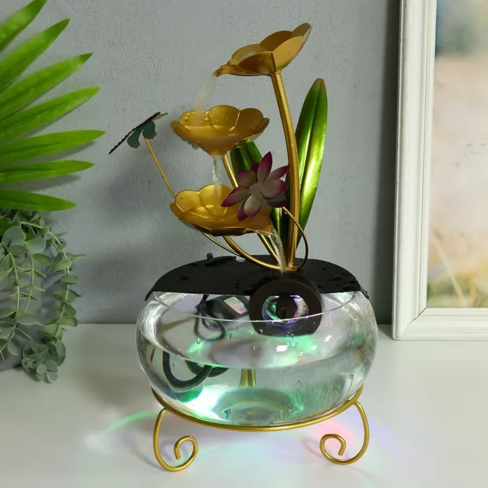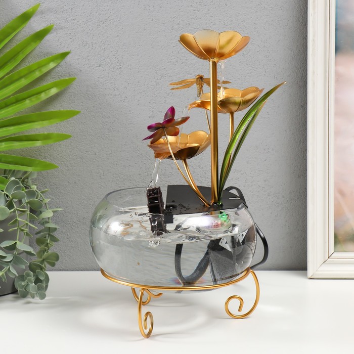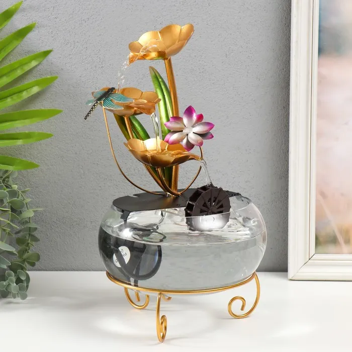 Фонтан настольный «Стрекоза в цветах», от сети, 21×21×34 см